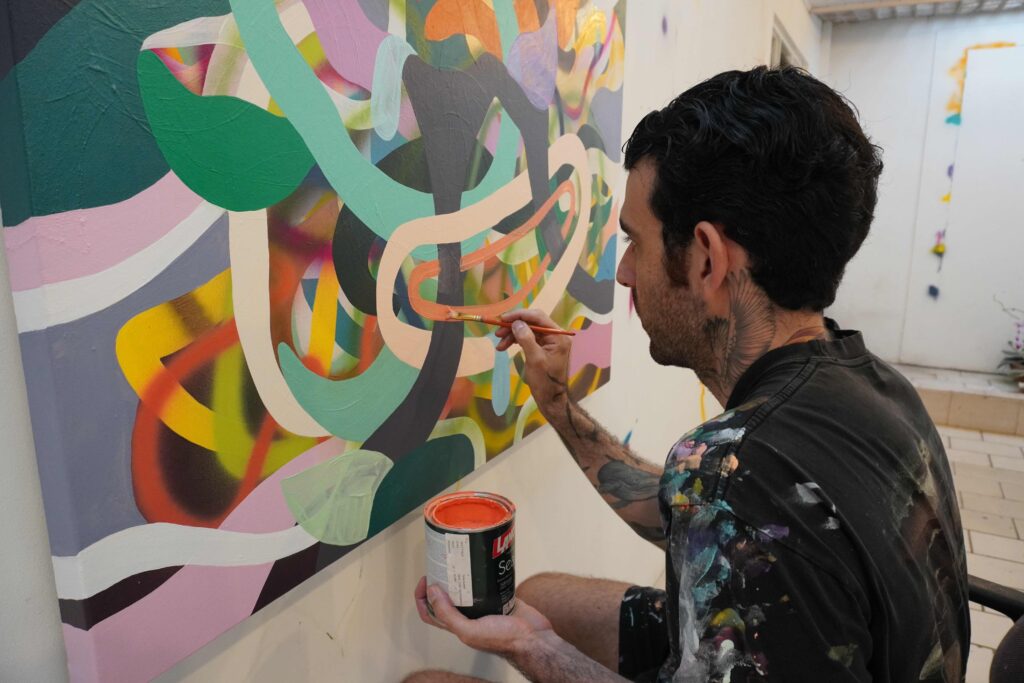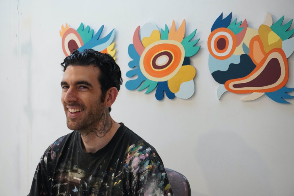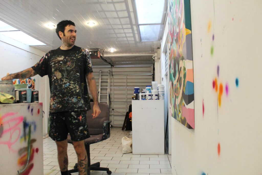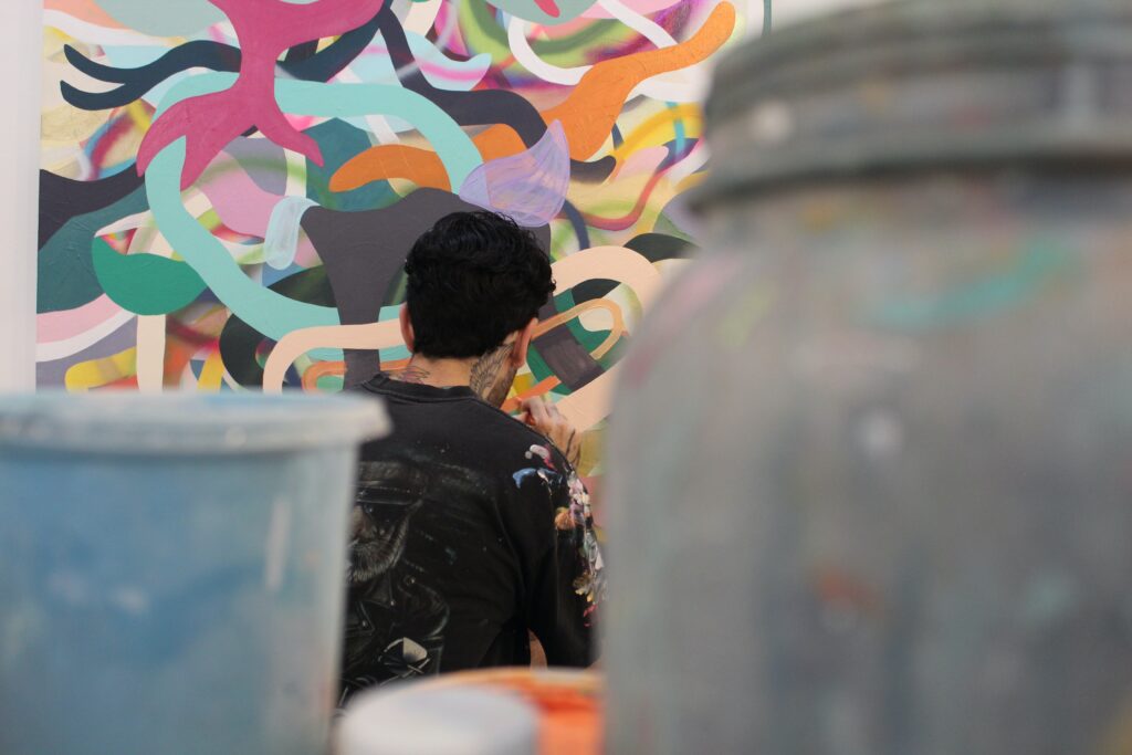 “Son manchas a final de cuentas. Hay gente que ve diferentes cosas siempre, pero yo trato de hacer cosas semi reconocibles que puedan darle suficiente información a alguien para tener sentido de lo que es, pero sin decirle literalmente lo que es”, dijo Urpí. “Mucho también viene por medio de las formas que utilizo. Los colores. Las líneas. Eso tiene todo que ver con el mood. Con el feeling [sentimiento] que está presentando”.