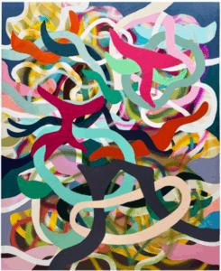Su serie de pinturas más reciente ejemplifica esta exploración a través de complejas capas pictóricas. Estas capas articulan visualmente la intrincada composición de la psique humana, mientras que simultáneamente abogan por la integración esencial de diversos individuos dentro de la sociedad.