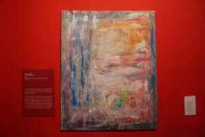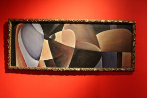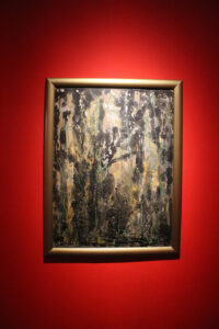 «Vorágine» de Guillermo Jiménez Sáenz es una pintura expresionista abstracta que destaca por su dinamismo y el uso de una paleta sombría con acentos vibrantes. Esta obra puede interpretarse como la manifestación visual del paisaje emocional interno del artista. Adicionalmente, la pieza puede ser un comentario social o existencial, aludiendo al desasosiego de una década globalmente agitada y a la turbulenta condición humana.