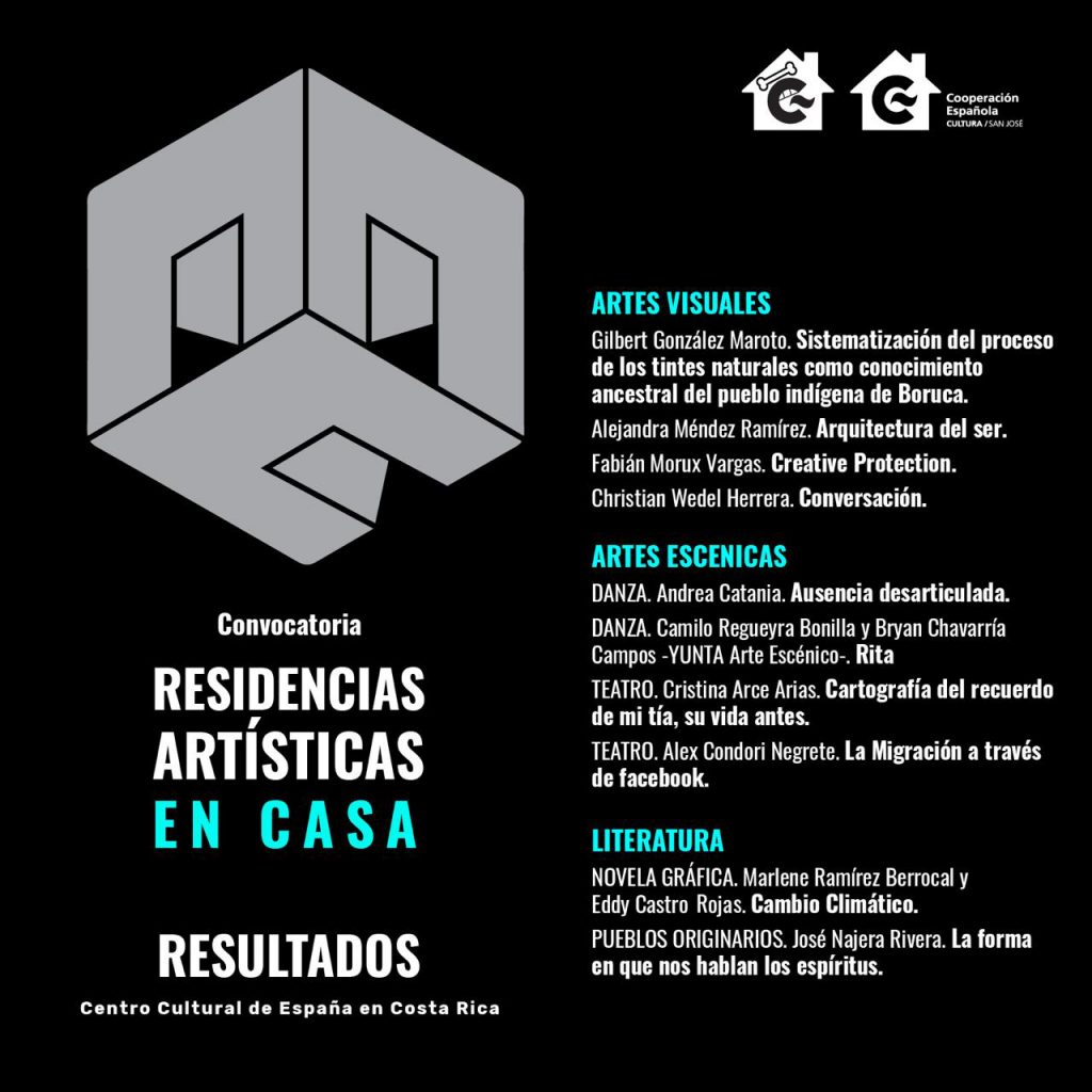 Las Residencias Artísticas “en Casa” surgen con el objetivo de apoyar al tejido cultural costarricense en las disciplinas de Artes Visuales, Artes Escénicas y Literatura, en el marco de la pandemia sanitaria COVID-19 que azota al país y al mundo entero.